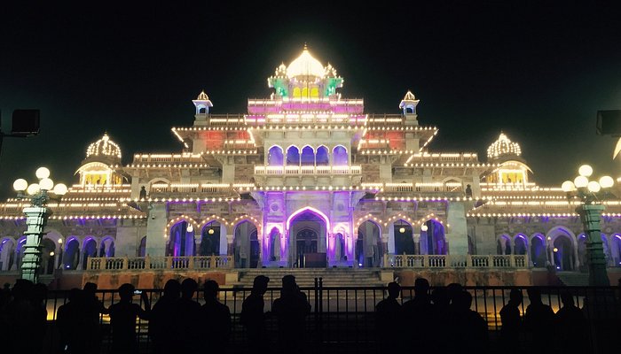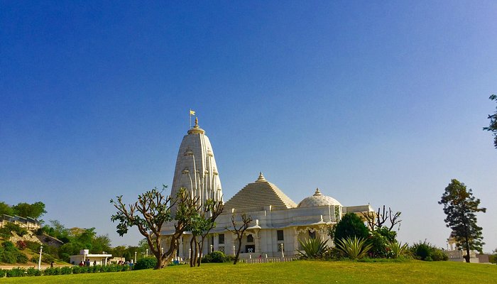 The Lakshmi-Narayan Temple, or Birla Temple, built in 1988 by the Birla family, sits at the base of Moti Dungari in south Jaipur. Made entirely of white marble, it is dedicated to Lord Vishnu and Goddess Lakshmi, featuring intricate carvings and sculptures depicting mythological themes. The temple has three domes symbolizing India’s major religions and looks spectacular when illuminated at night. The complex also houses a museum displaying the Birla family’s earlier belongings.